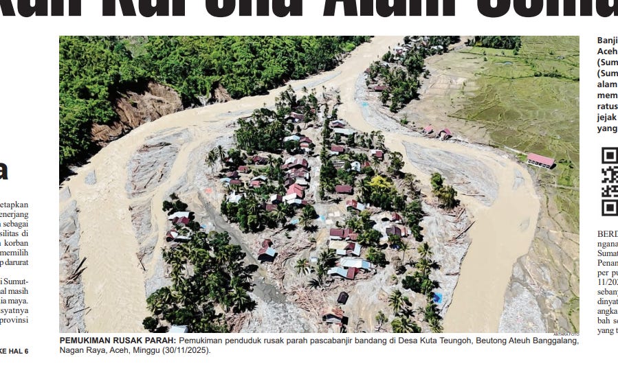 It showed part of the heavy flooding triggered by Cyclonic Storm Senyar in Aceh, specifically in Kuta Teungoh, Beutong Ateuh Balanggang, Nagan Raya.