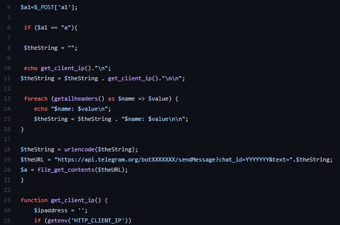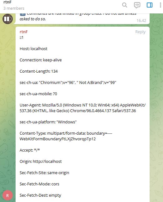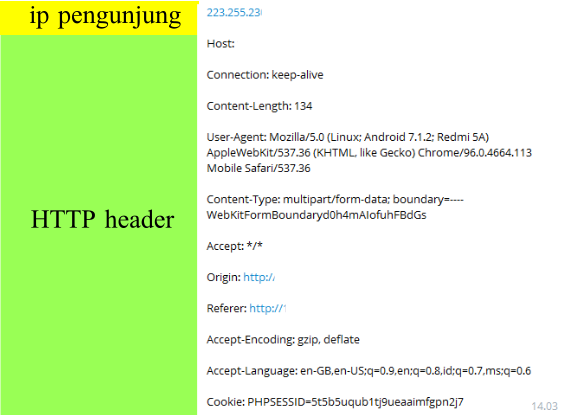 Chat telegram ini terdiri dari dua bagian utama : ip pengunjung dan http header.