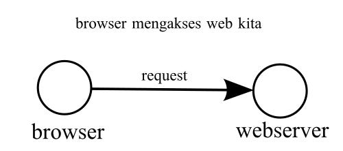 Pertama, browser pengguna mengakses web kita. Browser pengguna meminta request ke webserver.