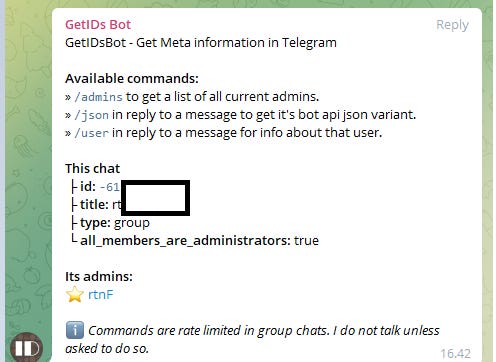 Buat grup baru, undang bot kita kedalam grup baru itu, lalu undang juga “@getidsbot”.