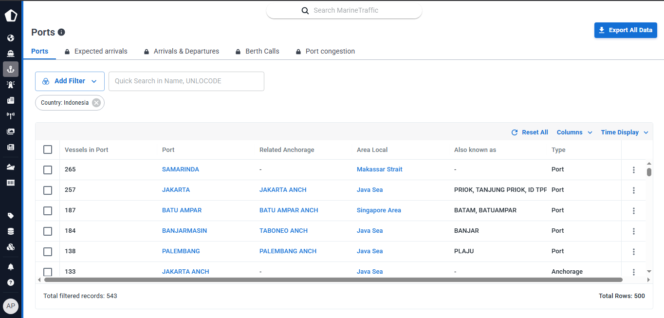 MarineTraffic provides a real-time database showing how many ships are currently standing by in each port. That allowed me to see which ports were actually active at the time. I gathered data from MarineTraffic and sorted it based on how many ships were standing by in each port on the night I collected the data.